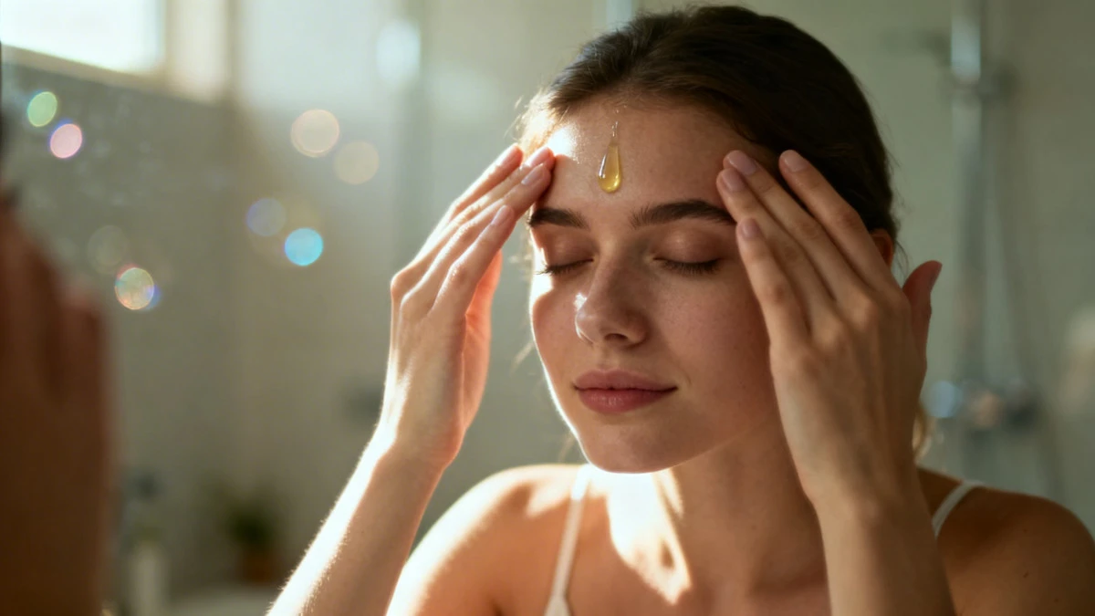Start by washing your face and applying a few drops of plant oil or serum. This helps your fingers glide easily and nourishes your skin. Place your palms at your eyebrows and gently glide them upward toward your hairline, applying light pressure. Repeat several times to relax your forehead.
