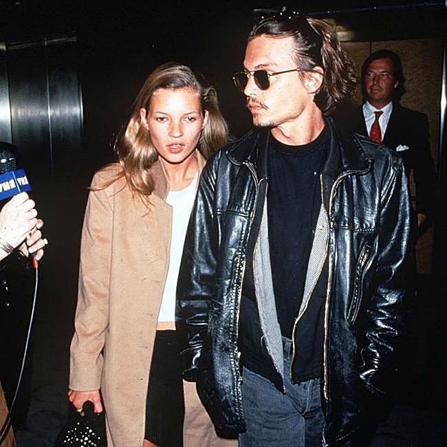 Kate Moss and her former partner, Johnny Depp, in a 1990s image.